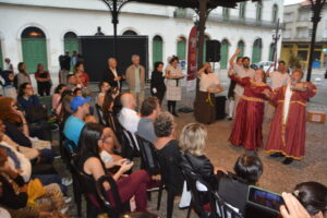 Além dos debates, a edição movimentou todo o Centro Histórico de Santos com visitas guiadas, exposições, experiências sensoriais e intervenções artísticas. Um dos momentos mais marcantes foi a apresentação teatral “Porto de Santos: Nossos Berços, Nossas Histórias”, encenada nas ruas e praças do entorno, recontando a saga da construção e da transformação do Porto de Santos, um dos mais importantes da América Latina.